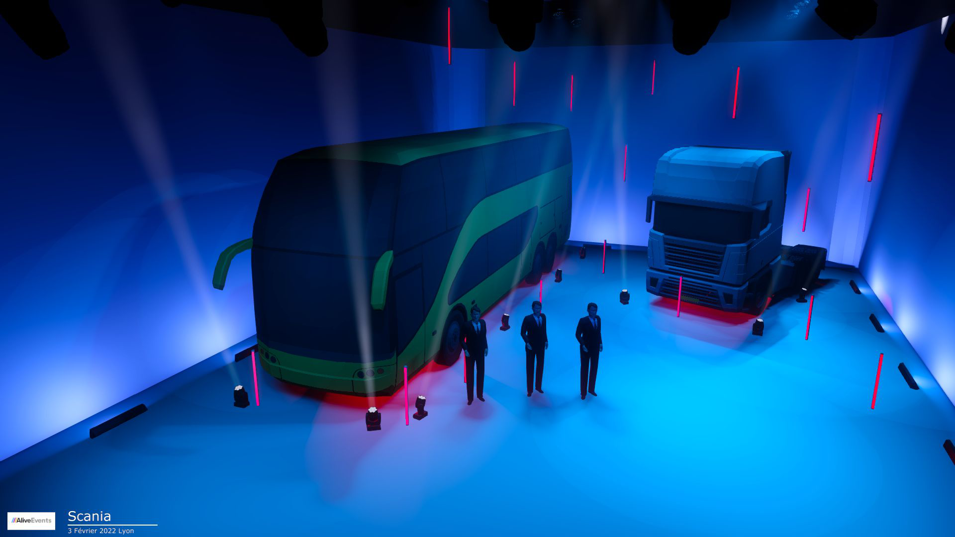 Pour visualiser les diffĂ©rentes scĂ©nographies, des modĂ©lisations 3D sont rĂ©alisĂ©es, avec lâavis et lâappui dâAlive Events, prestataire technique Ă©vĂ©nementiel habituĂ© Ă de tels projets. Sont aussi imaginĂ©s et ainsi modĂ©lisĂ©s des changements dans lâinstallation de plateau, des changements dâambiance avec des jeux de lumiĂšre et de camĂ©ras diffĂ©rents selon les scĂšnes. Des Ă©tapes de prĂ©paration indispensables en vue dâun live aussi dense. Scania France adore et valide !